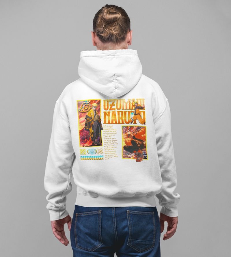 The 7th Hokage and the Protector of the Hidden Leaf Printed WhiteCotton Hoodie For Men