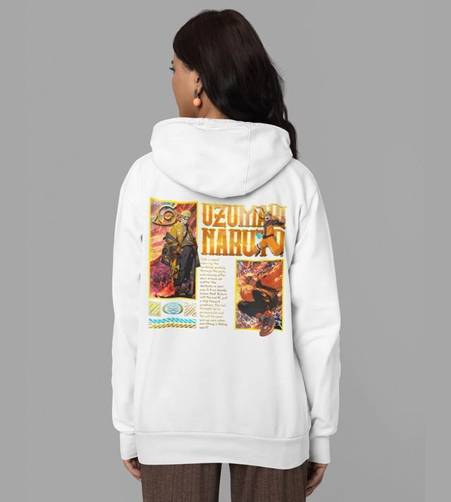 The 7th Hokage and the Protector of the Hidden Leaf Printed WhiteCotton Hoodie For Women
