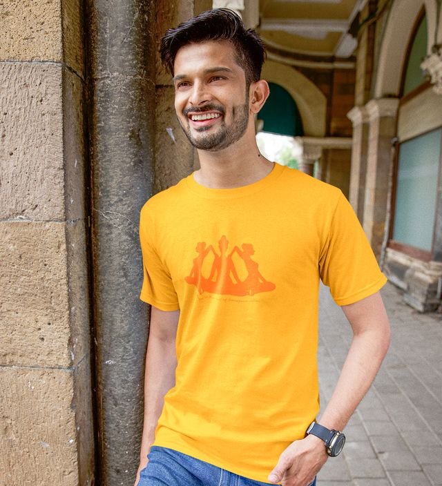 The Art Of Transformation Yellow Round Neck Cotton Half Sleeved Men T-Shirt with Printed Graphics