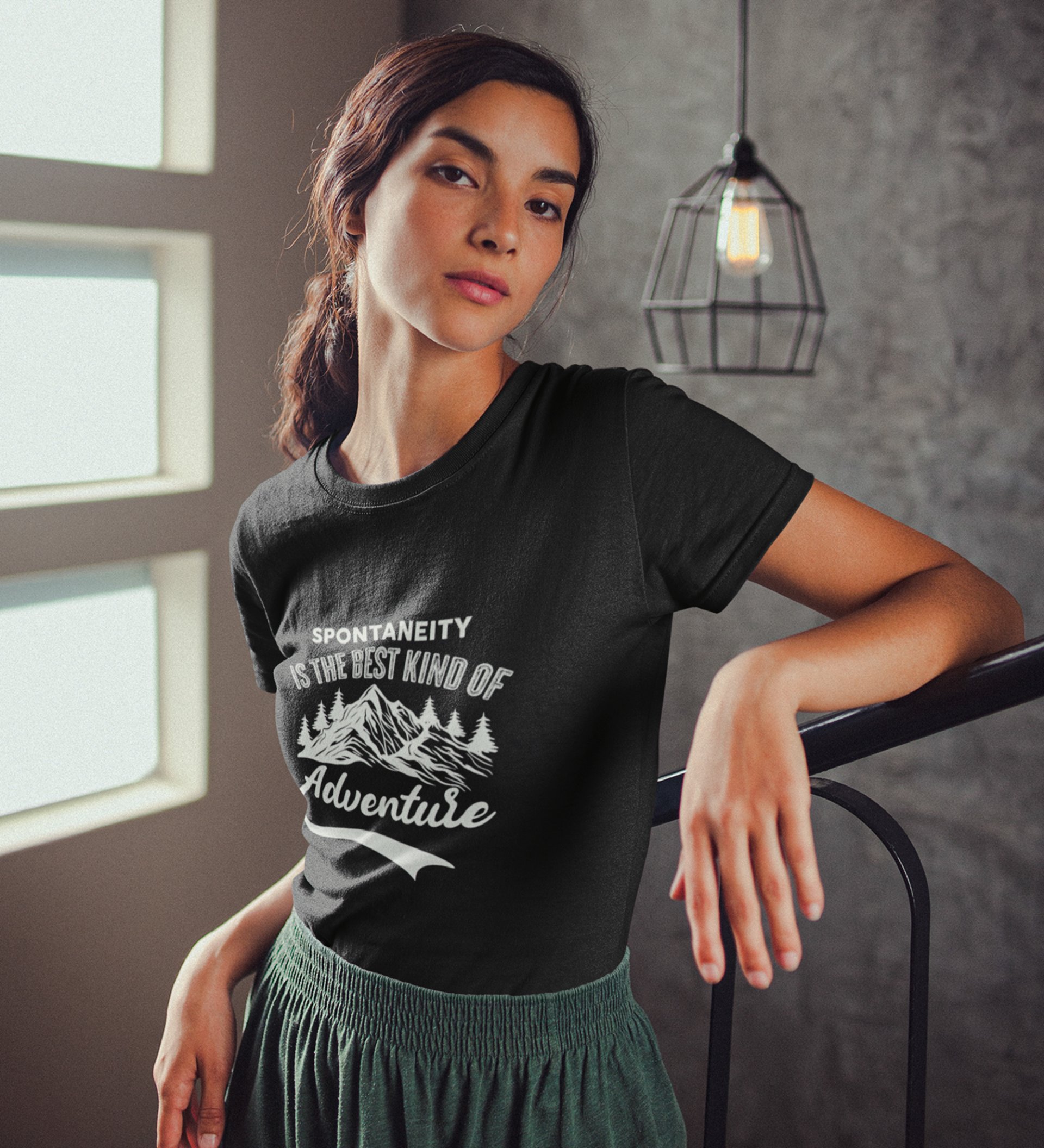 HopOfferBest Kind Of Adventure Black Round Neck Cotton Half Sleeved Women's T-Shirt with Printed Graphics