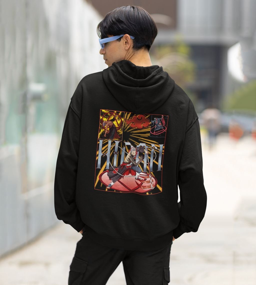 The Cursed Warrior with a Bloodthirsty Legacy Printed Black Cotton Hoodie For Men