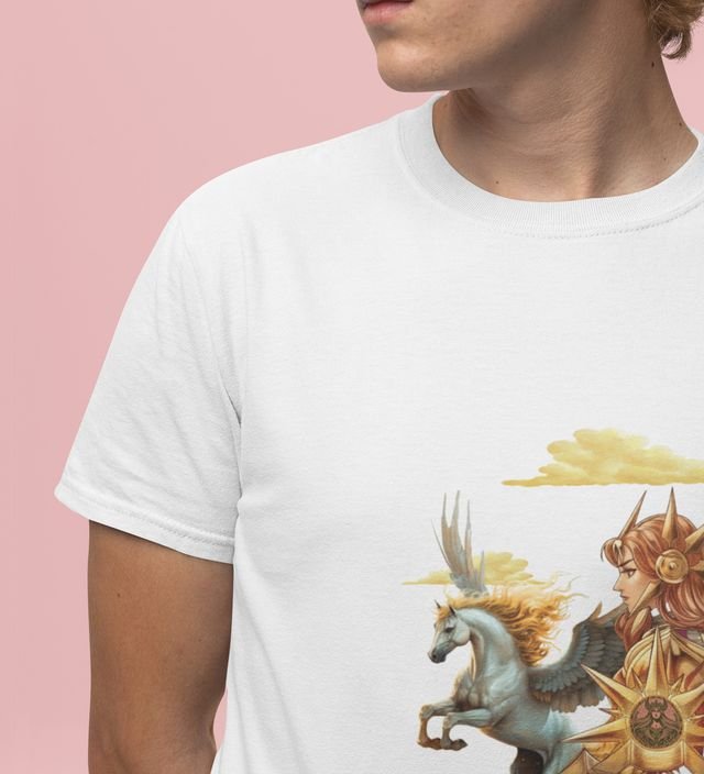 The Eternal Flight: Celestial Knight Graphic Printed White T-Shirt