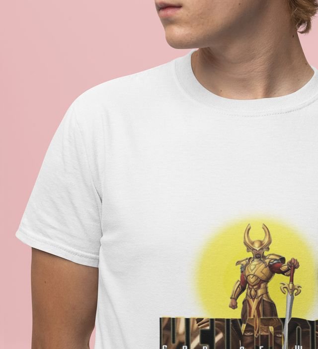 The Golden Sentinel: Guardian Aura Graphic Printed White T-Shirt