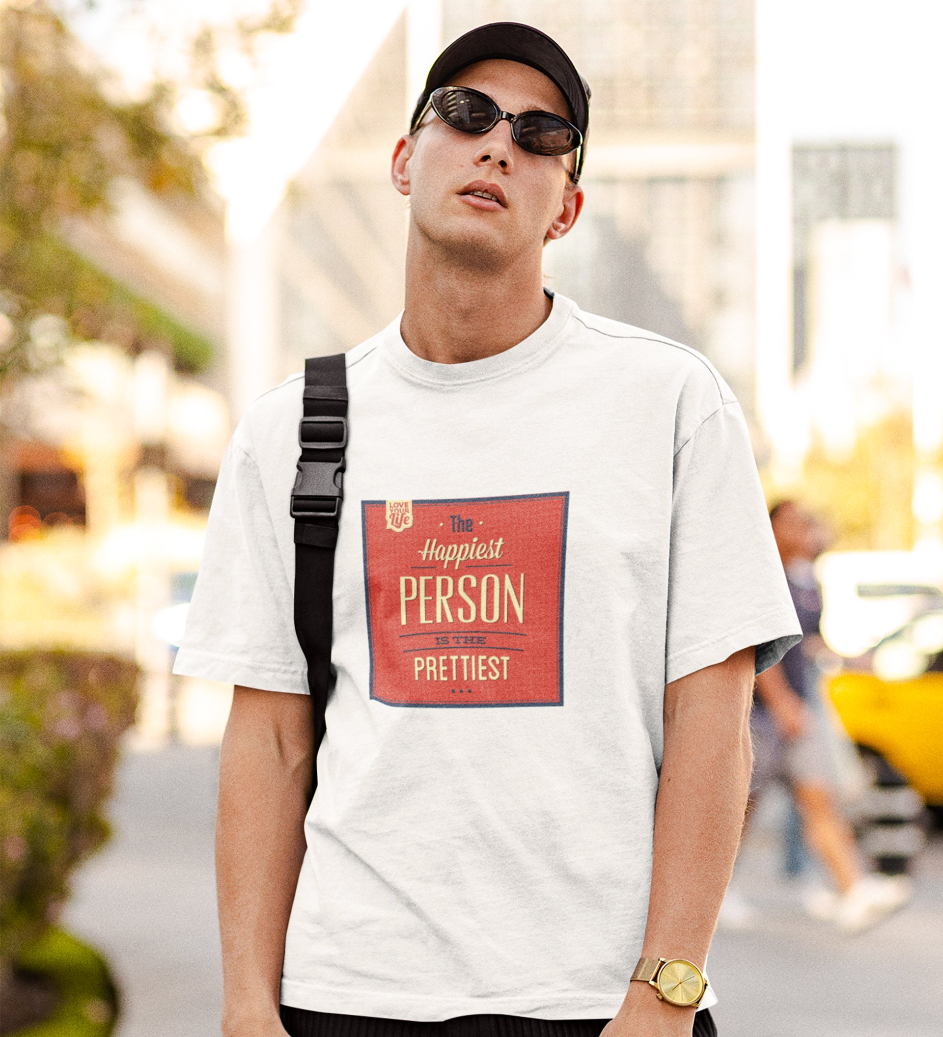 The Prettiest Person White Round Neck Cotton Half Sleeved Men's T-Shirt with Printed Graphics