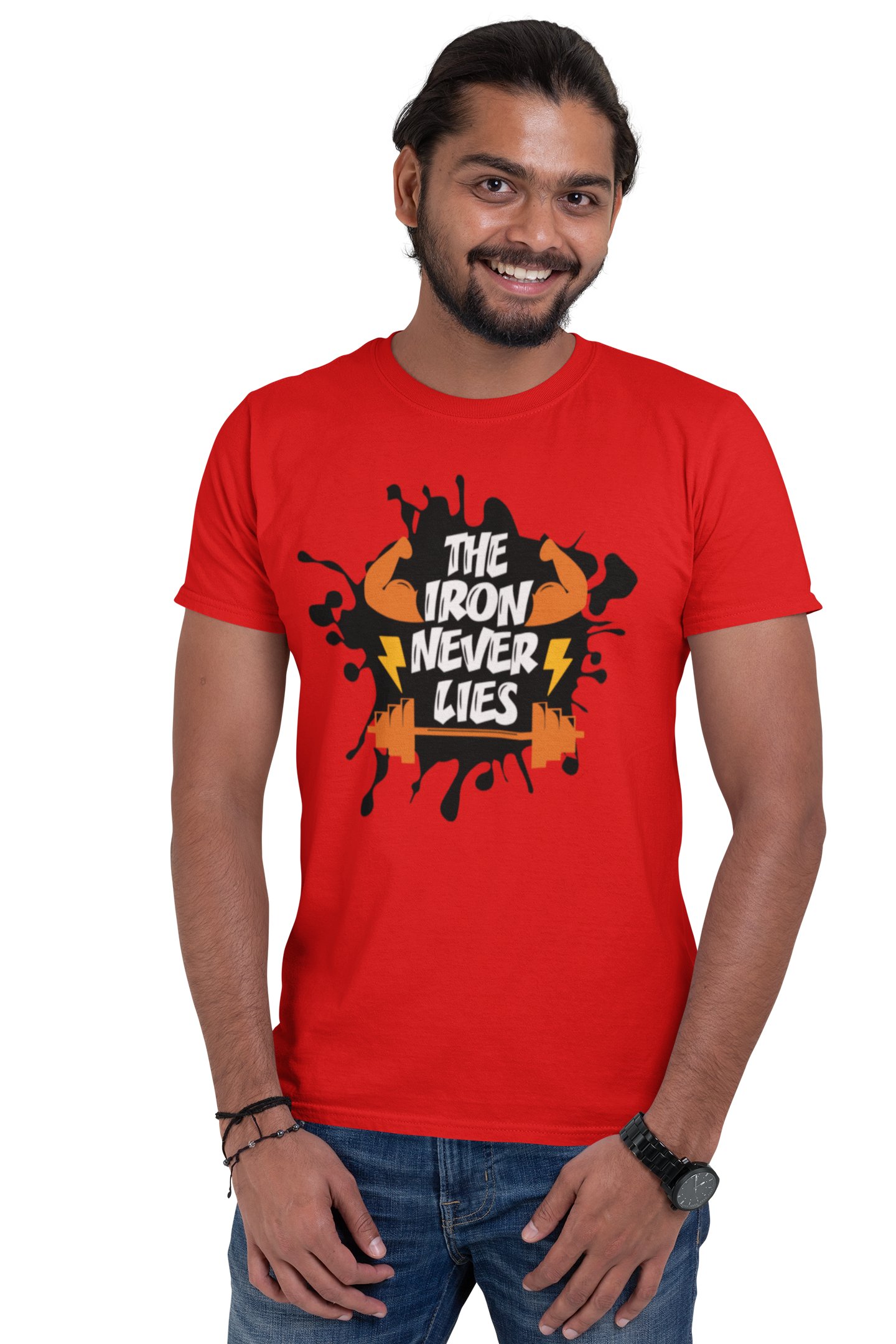 The Iron Never Lies, (BG Blue, Brown and Black), Round Neck Gym Tshirt (Red Tshirt) - Clothes for Gym Lovers - Foremost Gifting Material for Your Friends and Close Ones