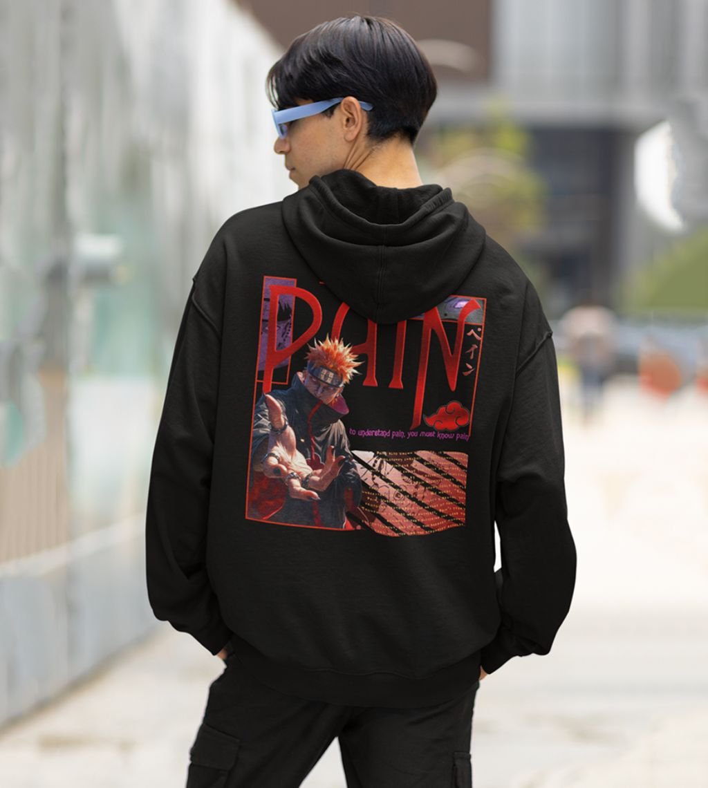The Leader of Akatsuki with a Vision for Peace Printed Black Cotton Hoodie For Men