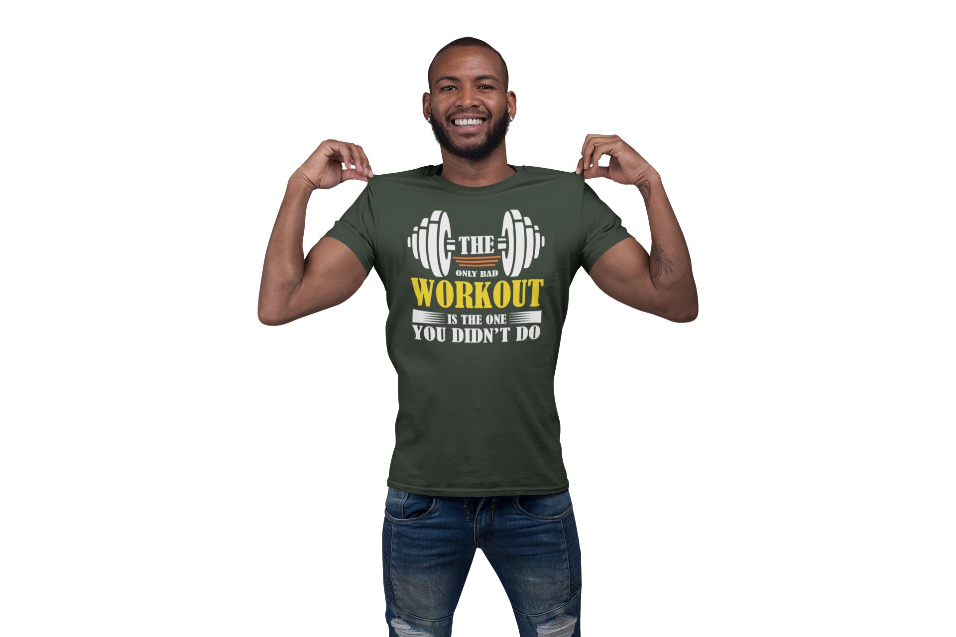 The Only Bad Workout is The One Round Neck Gym Tshirt (White, Yellow, Orange Outline) - Foremost Gifting Material for Your Friends and Close Ones