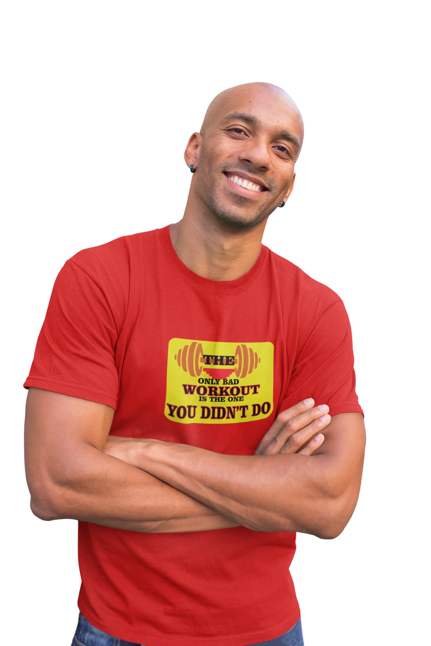 The Only Bad Workout is The One, You Didn't Do, (BG Yellow), Round Neck Gym Tshirt (Red Tshirt) - Clothes for Gym Lovers - Suitable for Gym Going Person - Foremost Gifting Material for Your Friends and Close Ones