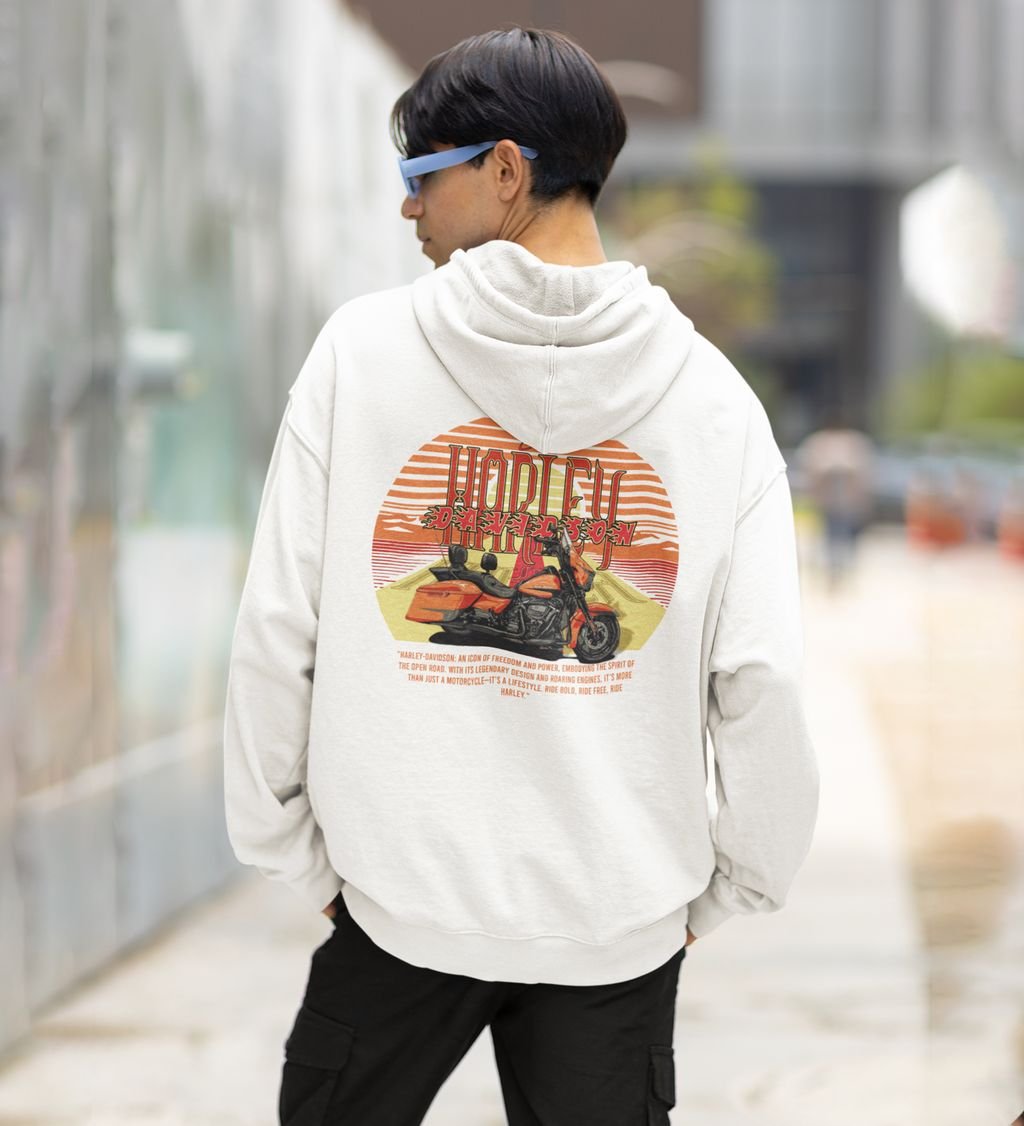 The Open Road Awaits Iconic Cruiser Printed White Hoodie for Men