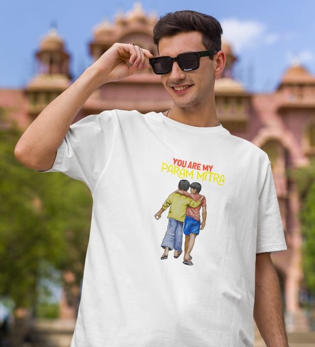The Param Mitra White Round Neck Cotton Half Sleeved Men T-Shirt with Printed Graphics
