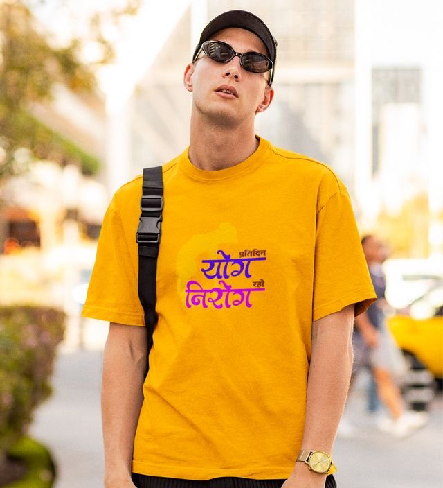 The Path To Niroga Yellow Round Neck Cotton Half Sleeved Men T-Shirt with Printed Graphics
