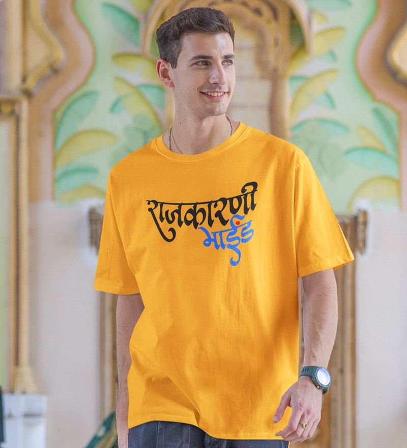The Political Mind Yellow Round Neck Cotton Half Sleeved Men T Shirt with Printed Graphics