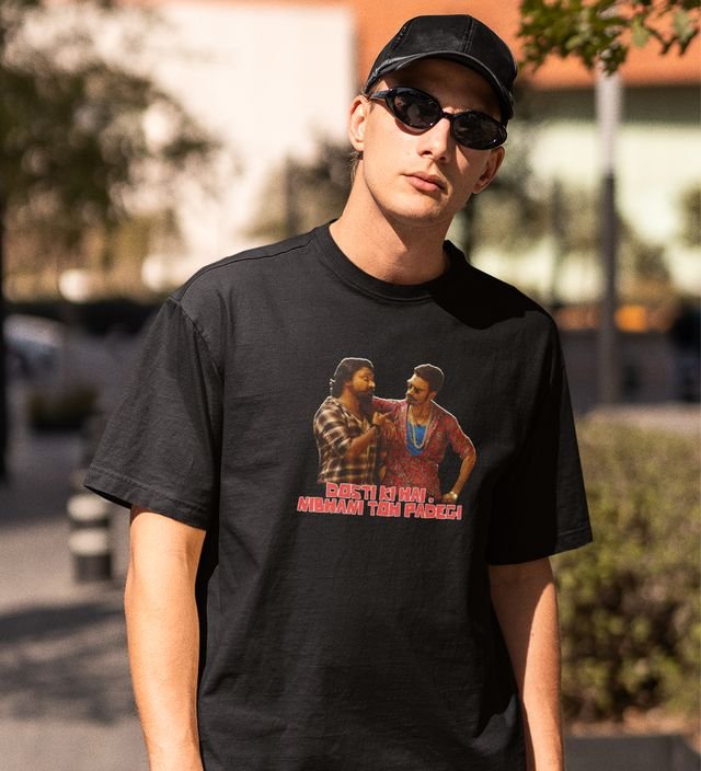 The Power Duo Black Round Neck Cotton Half Sleeved Men T-Shirt with Printed Graphics