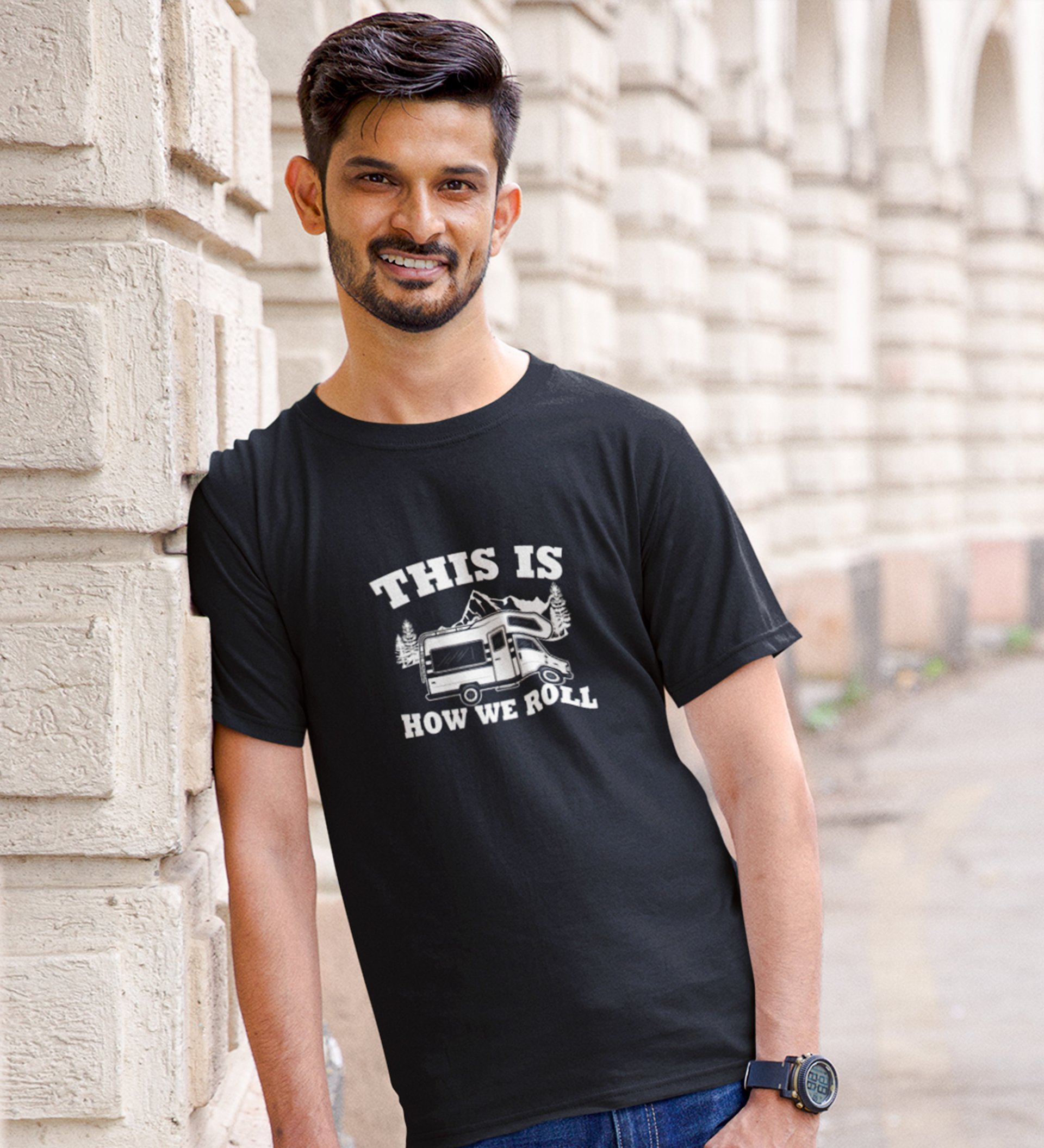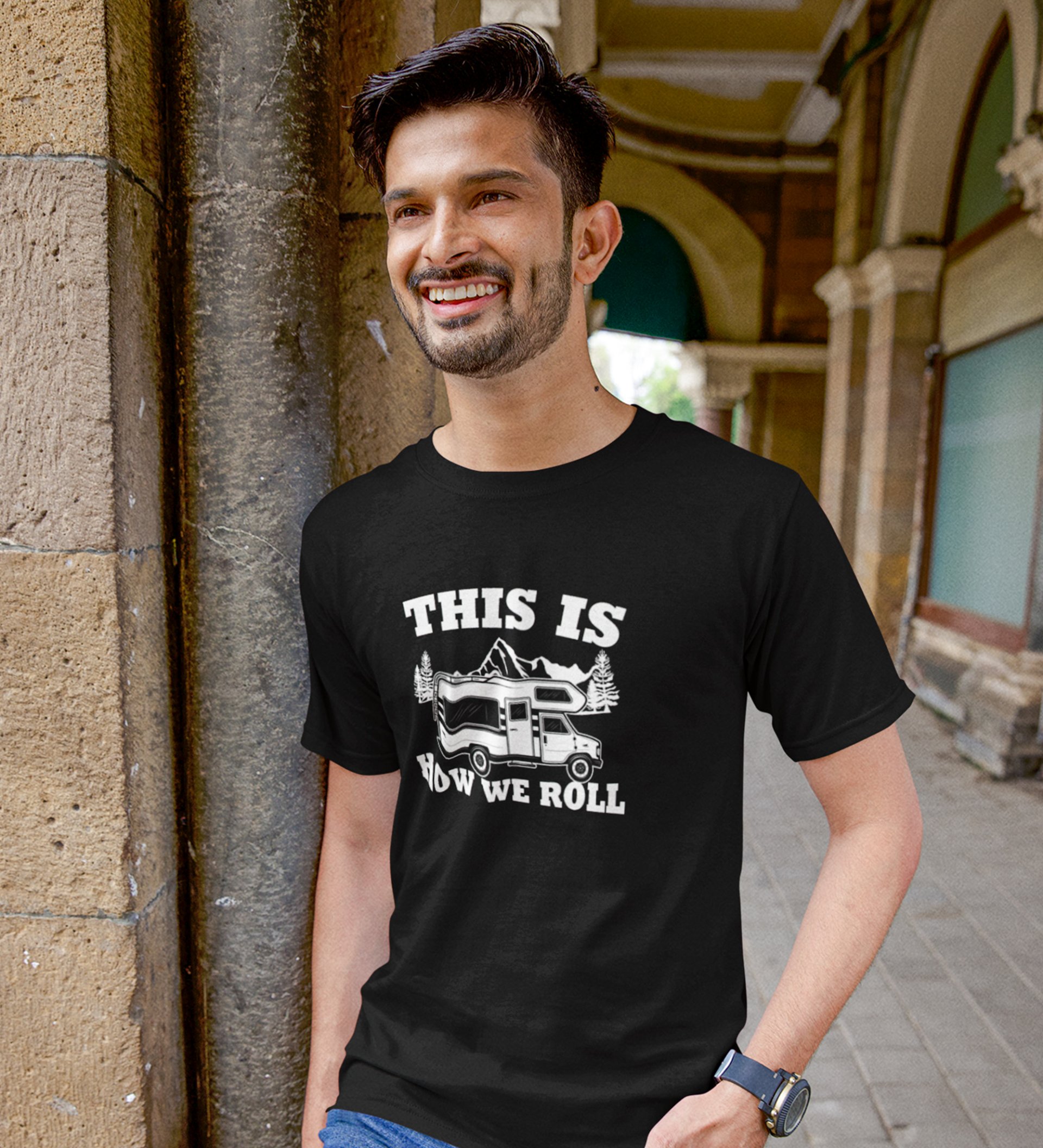 JD.TRENDS How We Roll Black Round Neck Cotton Half Sleeved Men's T-Shirt with Printed Graphics