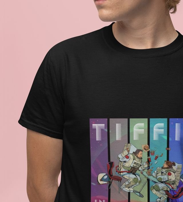 Tiffin in Orbit: Astronaut Lunchtime Galaxy Graphic Printed Black T-Shirt
