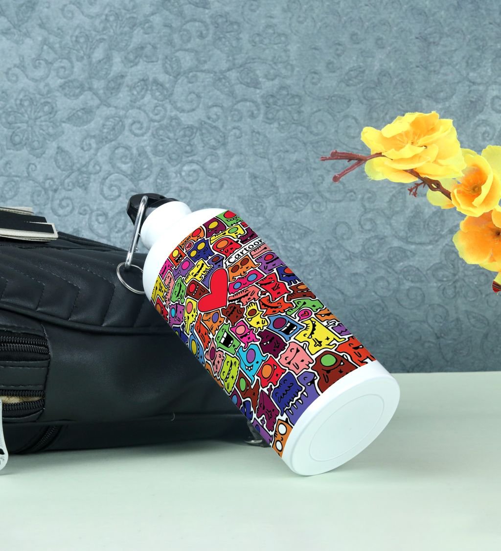 Tiny Terrors: Mini Mobs Doodles on Aluminium Water Bottle 600ml