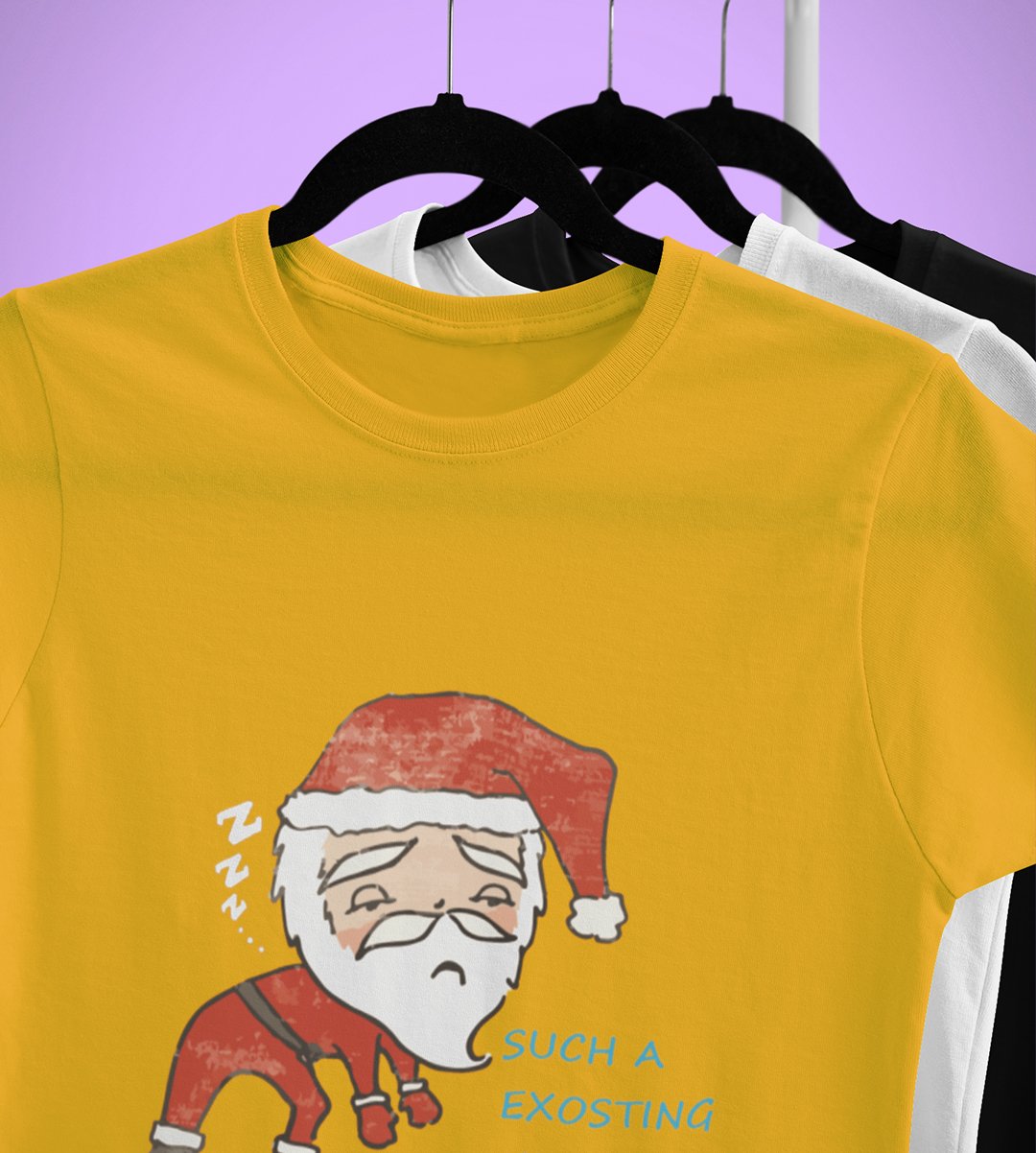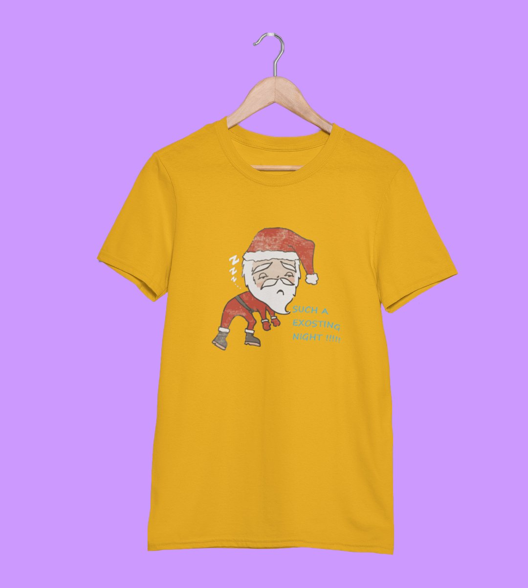 Tired Santa: Best Printed T-shirt (Yellow) Best Gift For Kids Boys Girls