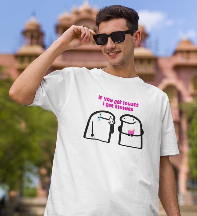 Tissues For Issues White Round Neck Cotton Half Sleeved Men T Shirt with Printed Graphics