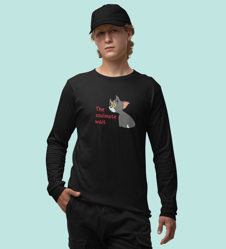 Tom Is Waiting For Soulmate: Printed (black) Full Sleeve T-Shirt For Singles