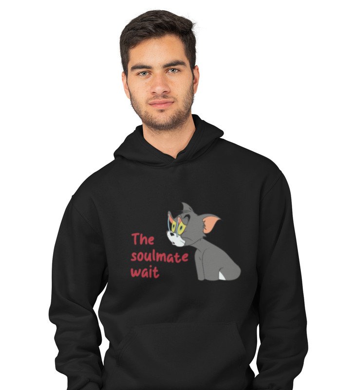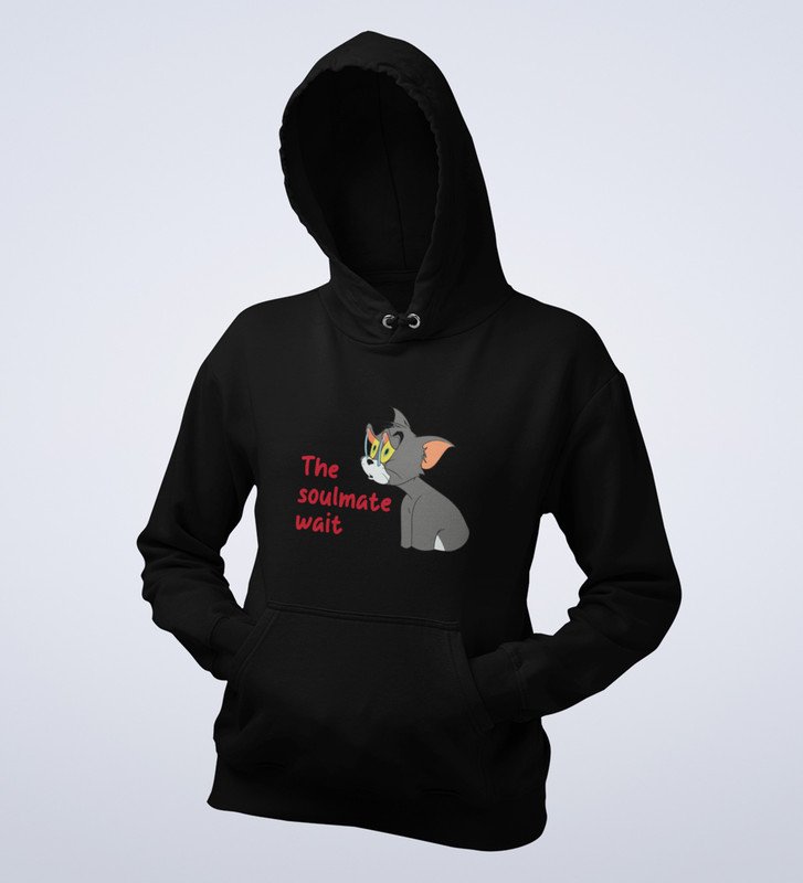 Tom Is Waiting For Soulmate: Printed (black) Hoodies For Singles