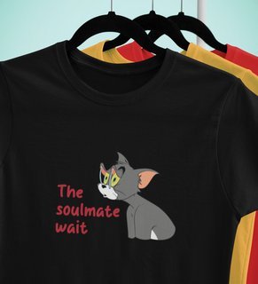 Tom Is Waiting For Soulmate: Printed (black) T-Shirt For Singles