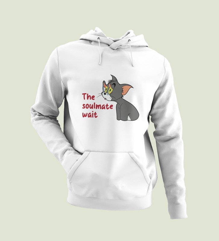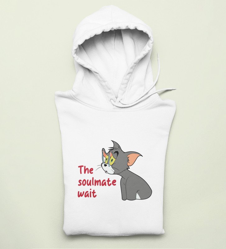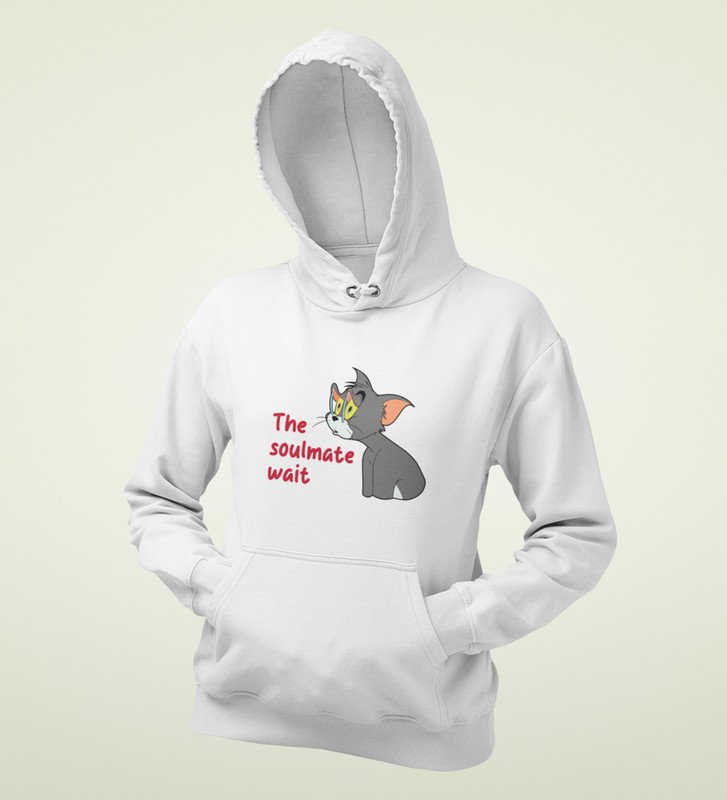 Tom Is Waiting For Soulmate: Printed (white) Hoodies For Singles