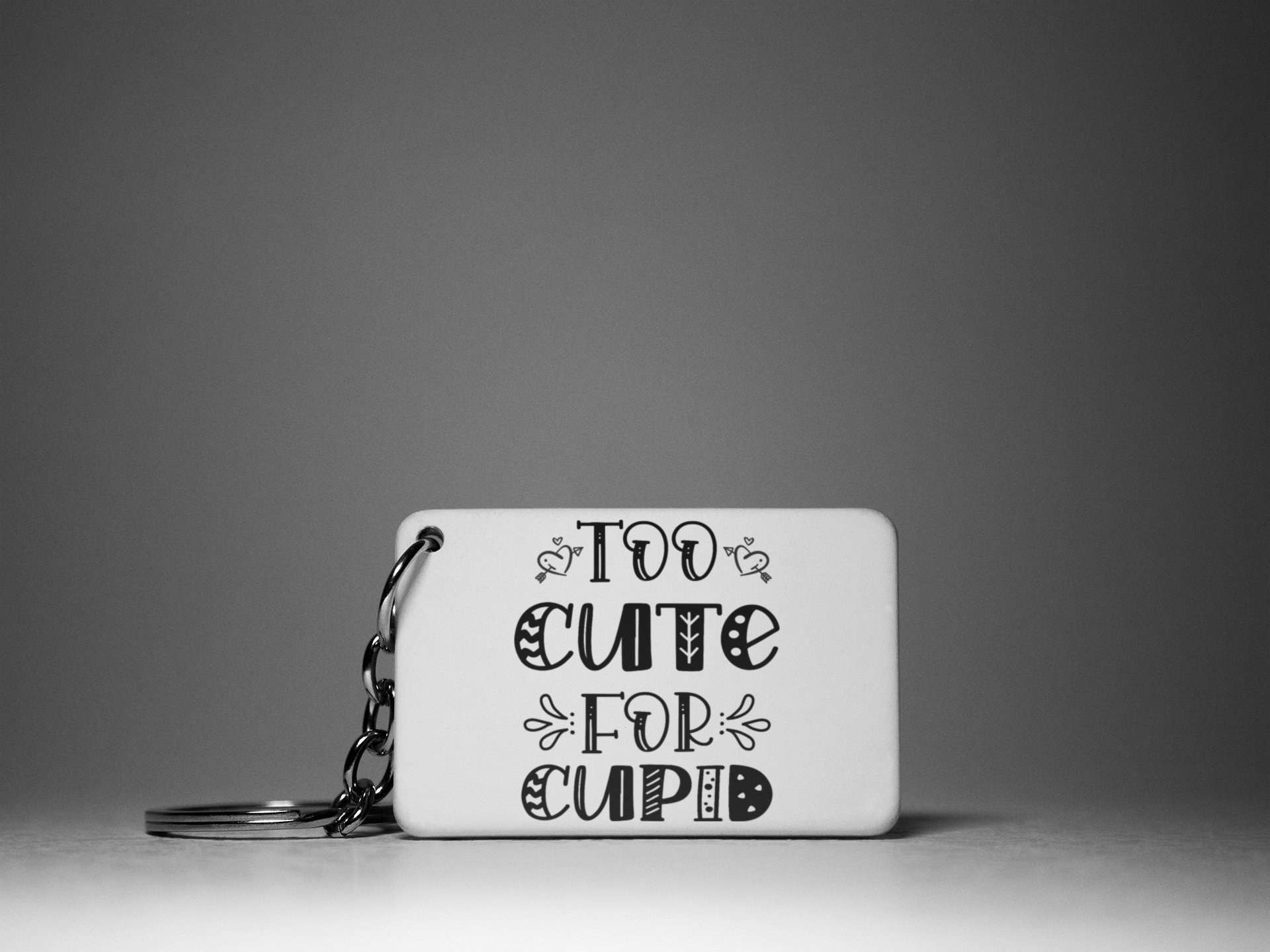 Too Cute For Cupid(Black Text ) -White -Designable Keychains(Pack Of 2)