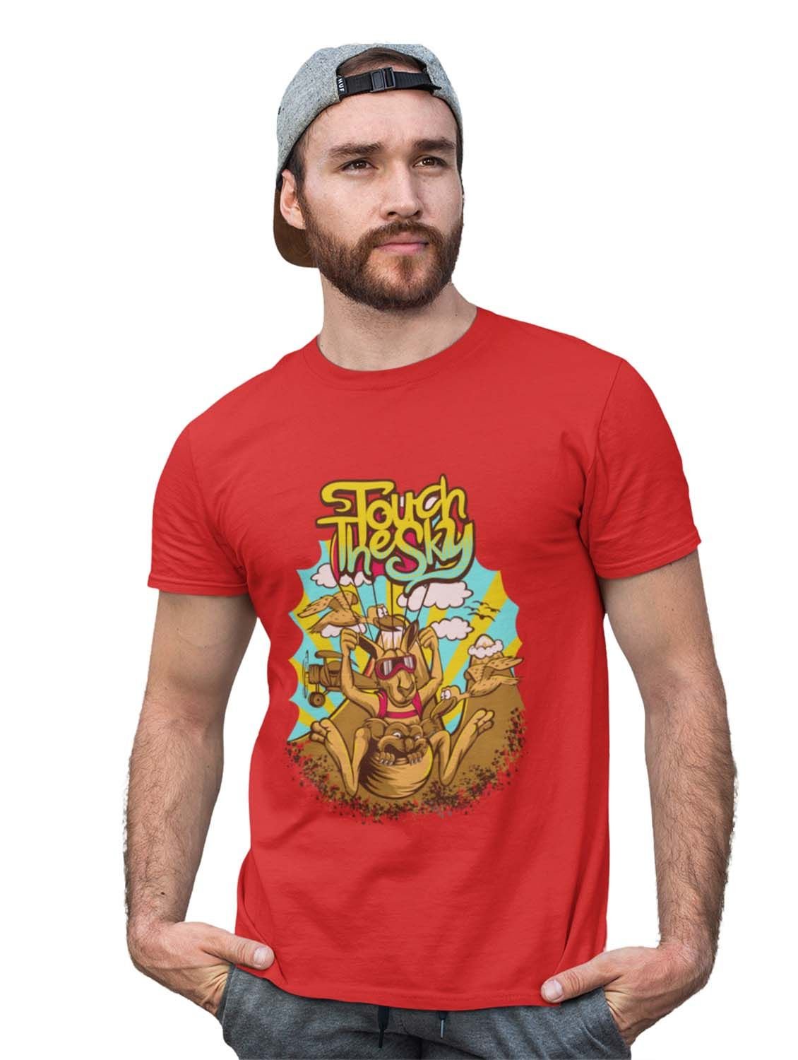High Jump Kangaroo Red Round Neck Cotton Half Sleeved T-Shirt with Printed Graphics