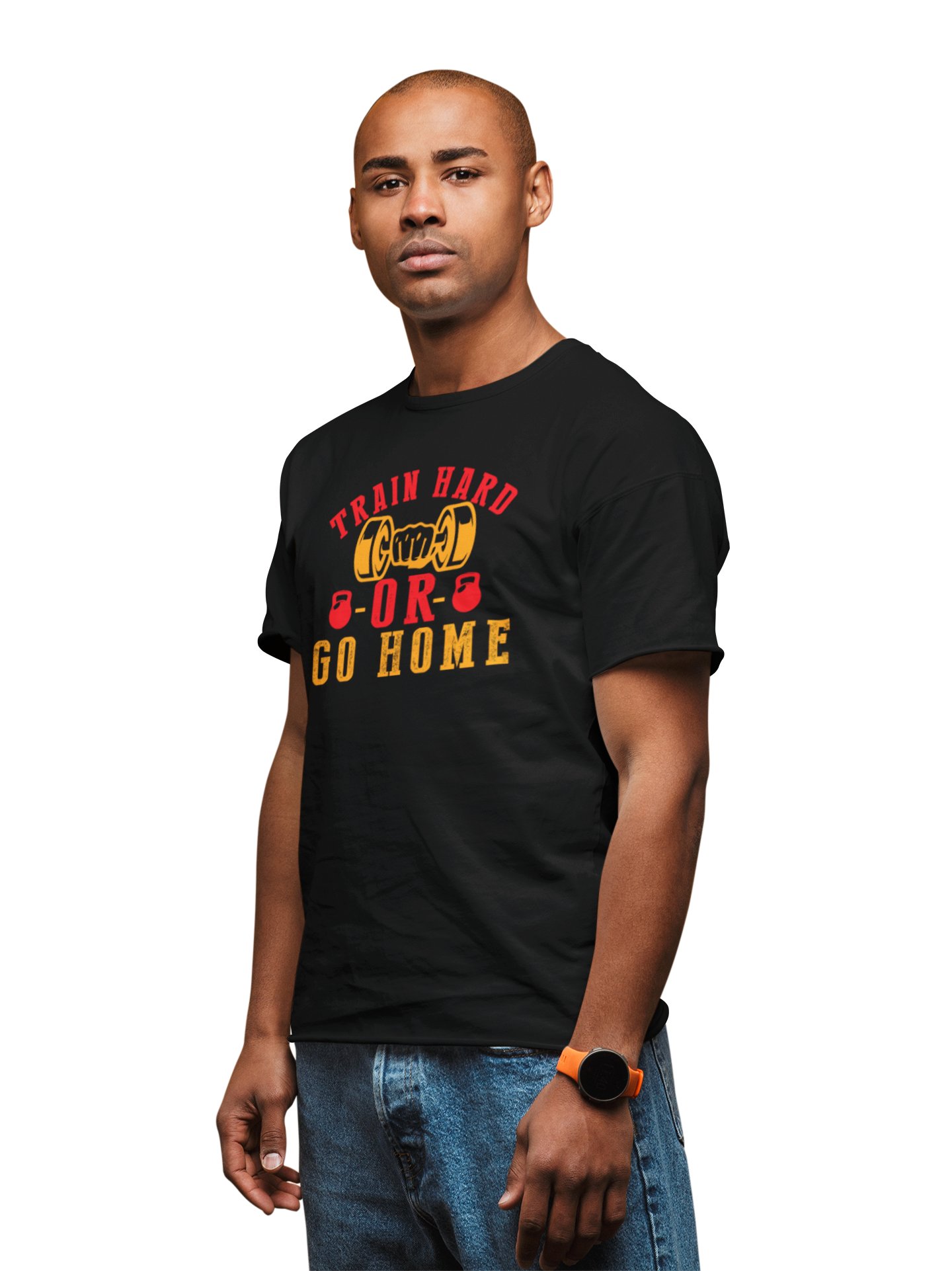 Train Hard Or Go Home, (BG Yellow and Red), Round Neck Gym Tshirt (White Tshirt) - Clothes for Gym Lovers - Suitable for Gym Going Person - Foremost Gifting Material for Your Friends and Close Ones