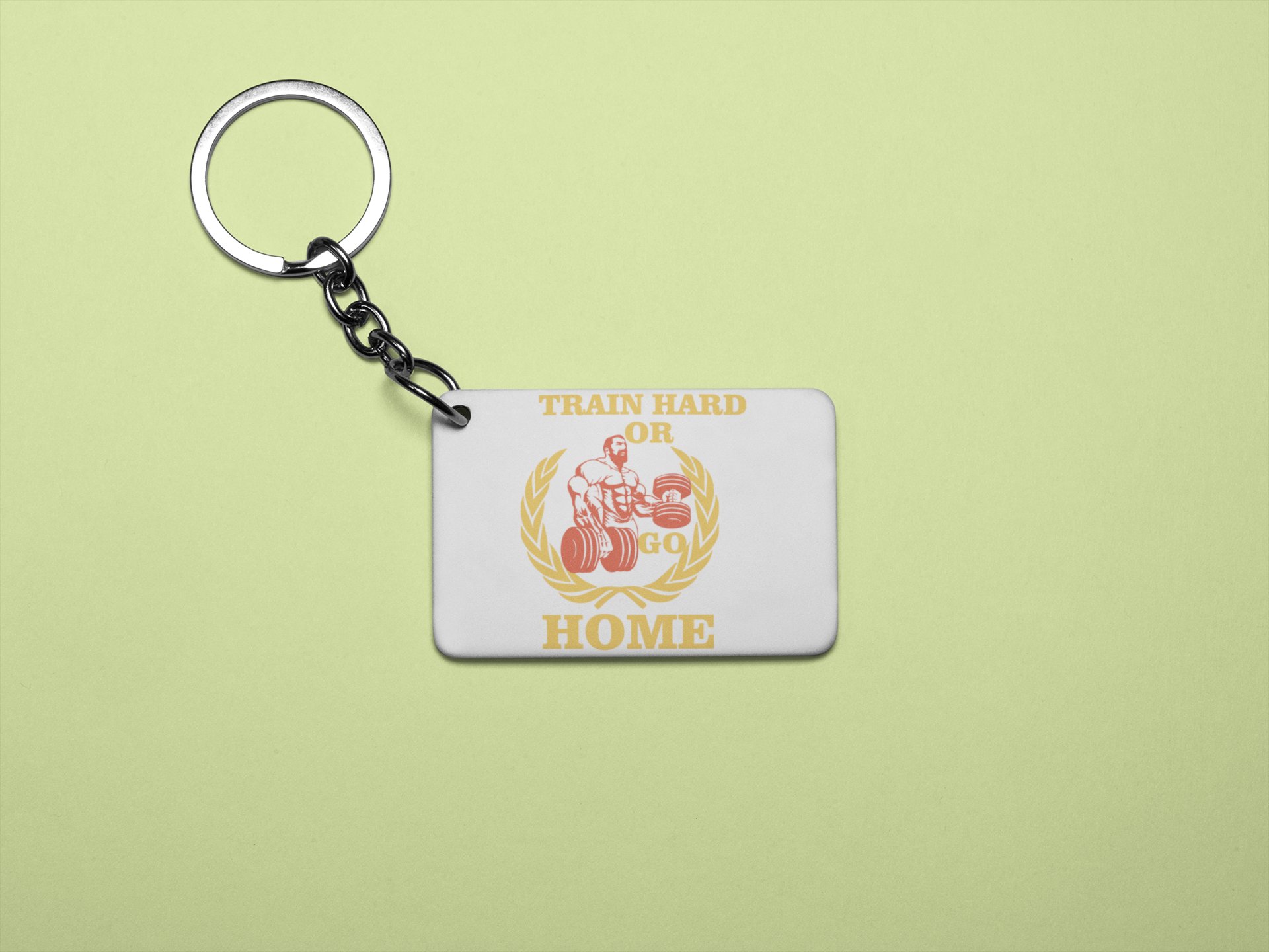 Train Hard Or Go Home, (BG Yellow, White and Red) - Printed Keychains for gym lovers(Pack of 2)
