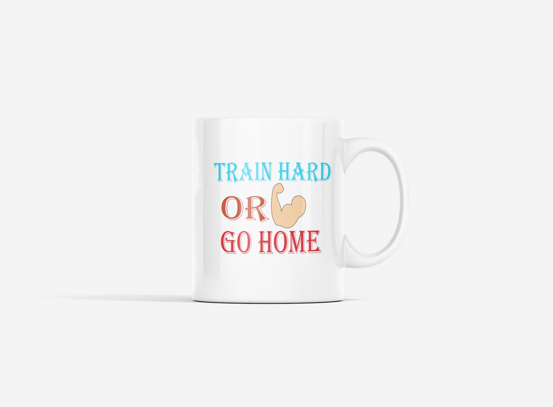 Train Hard or Go Home - gym themed printed ceramic white coffee and tea mugs/ cups for gym lovers