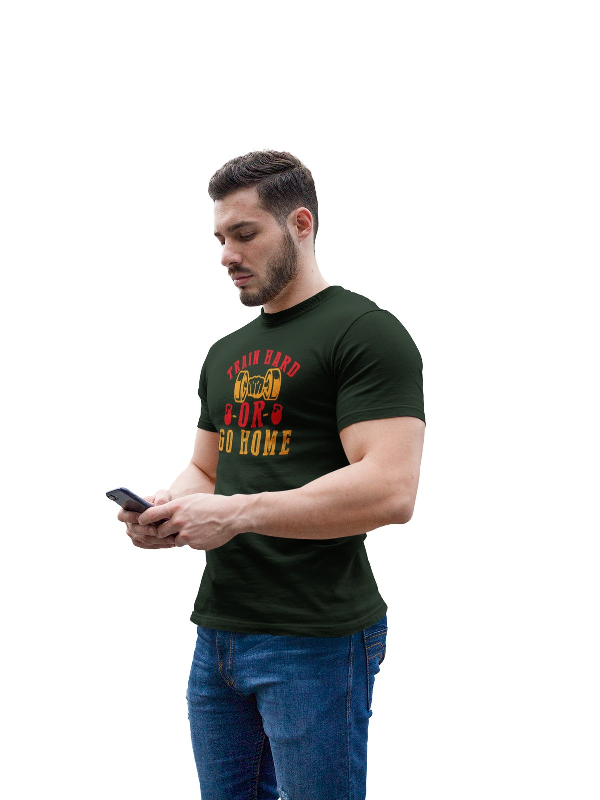 Train Hard or Go Home, Round Neck Gym Tshirt (BG Red, Golden) - Foremost Gifting Material for Your Friends and Close Ones