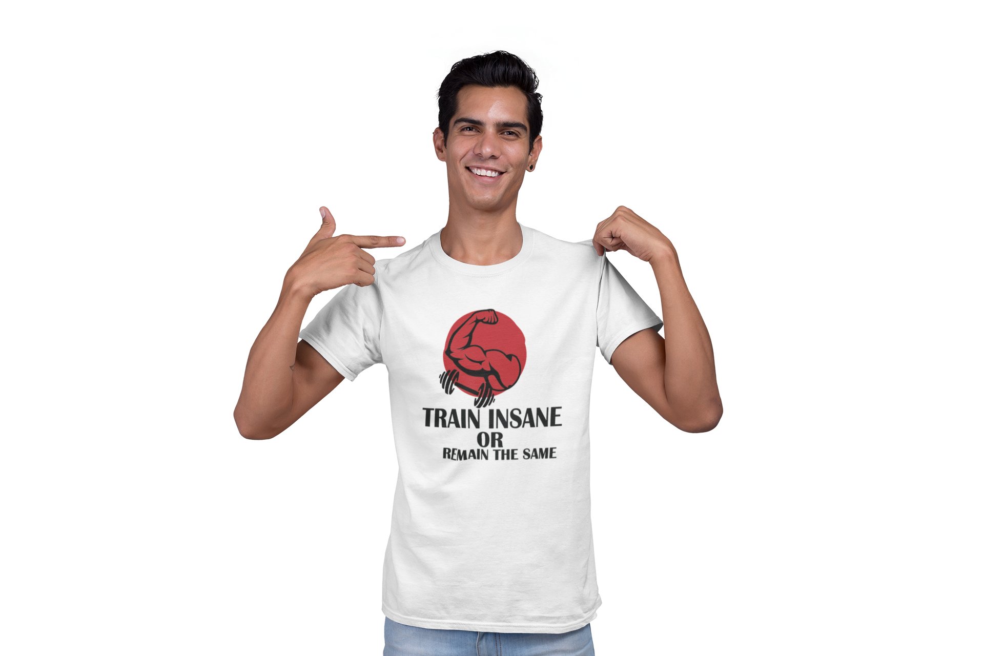Train Insane or Remain The Same Round Neck Gym Tshirt (White Tshirt) - Clothes for Gym Lovers - Suitable for Gym Going Person - Foremost Gifting Material for Your Friends and Close Ones