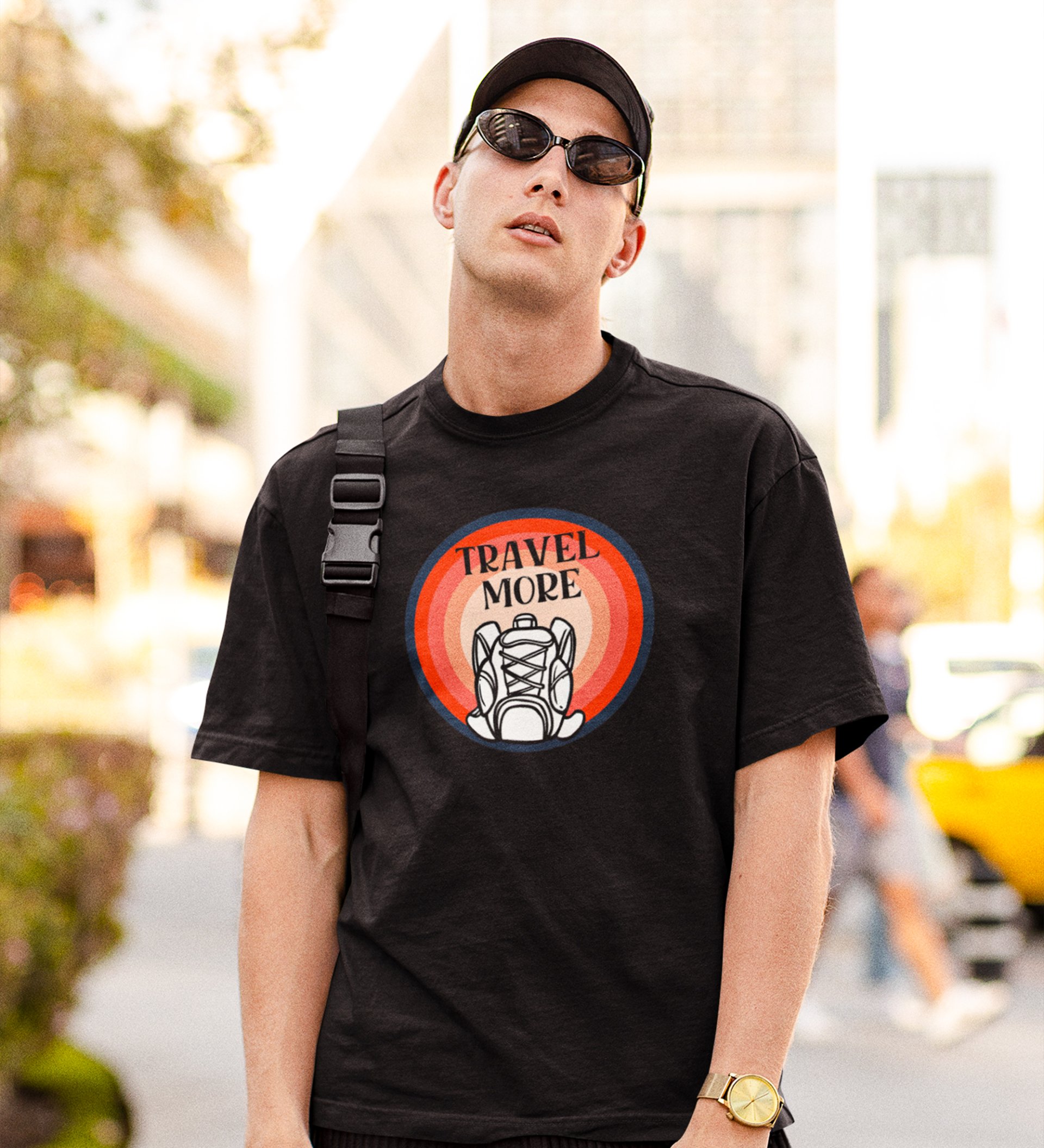 JD.TRENDS Travel More Black Round Neck Cotton Half Sleeved Men's T-Shirt with Printed Graphics