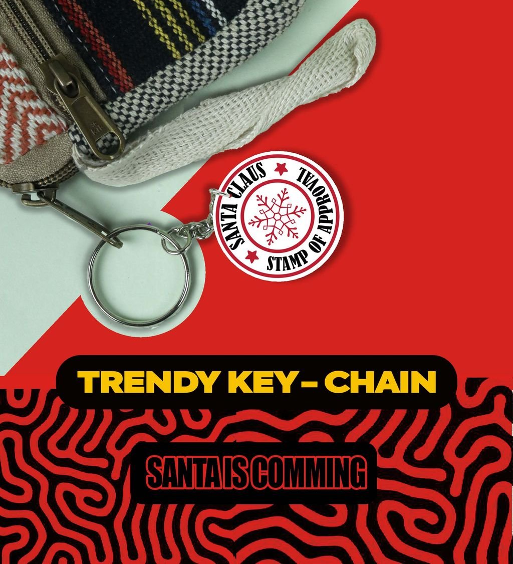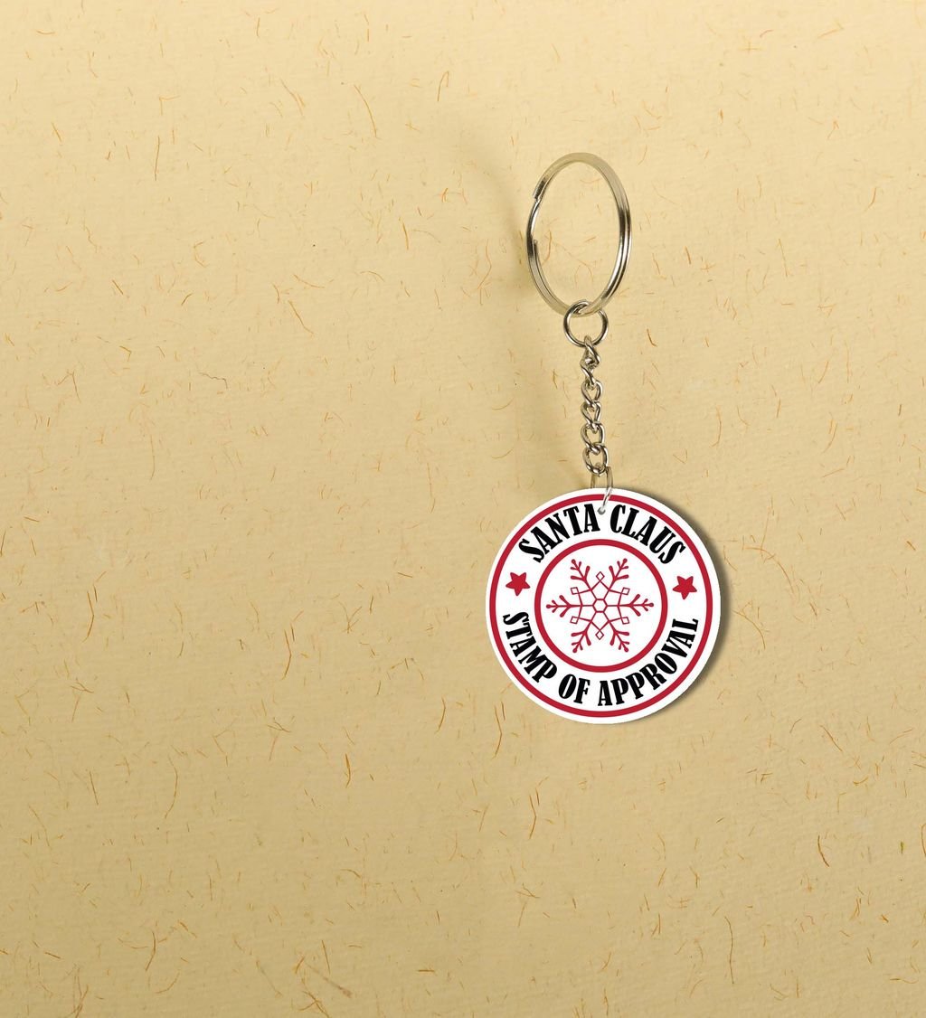 Trendy Christmas Accessory for Merry Vibes Santa Edition Printed Round Keychain Pack of 2.