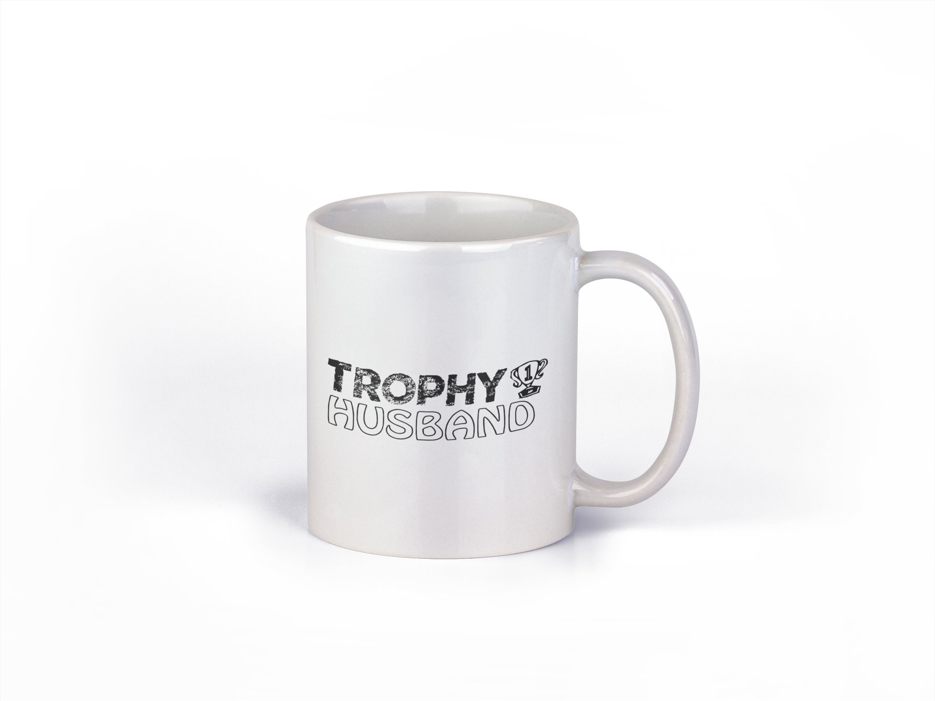 Trophy Husband- family themed printed ceramic white coffee and tea mugs/ cups