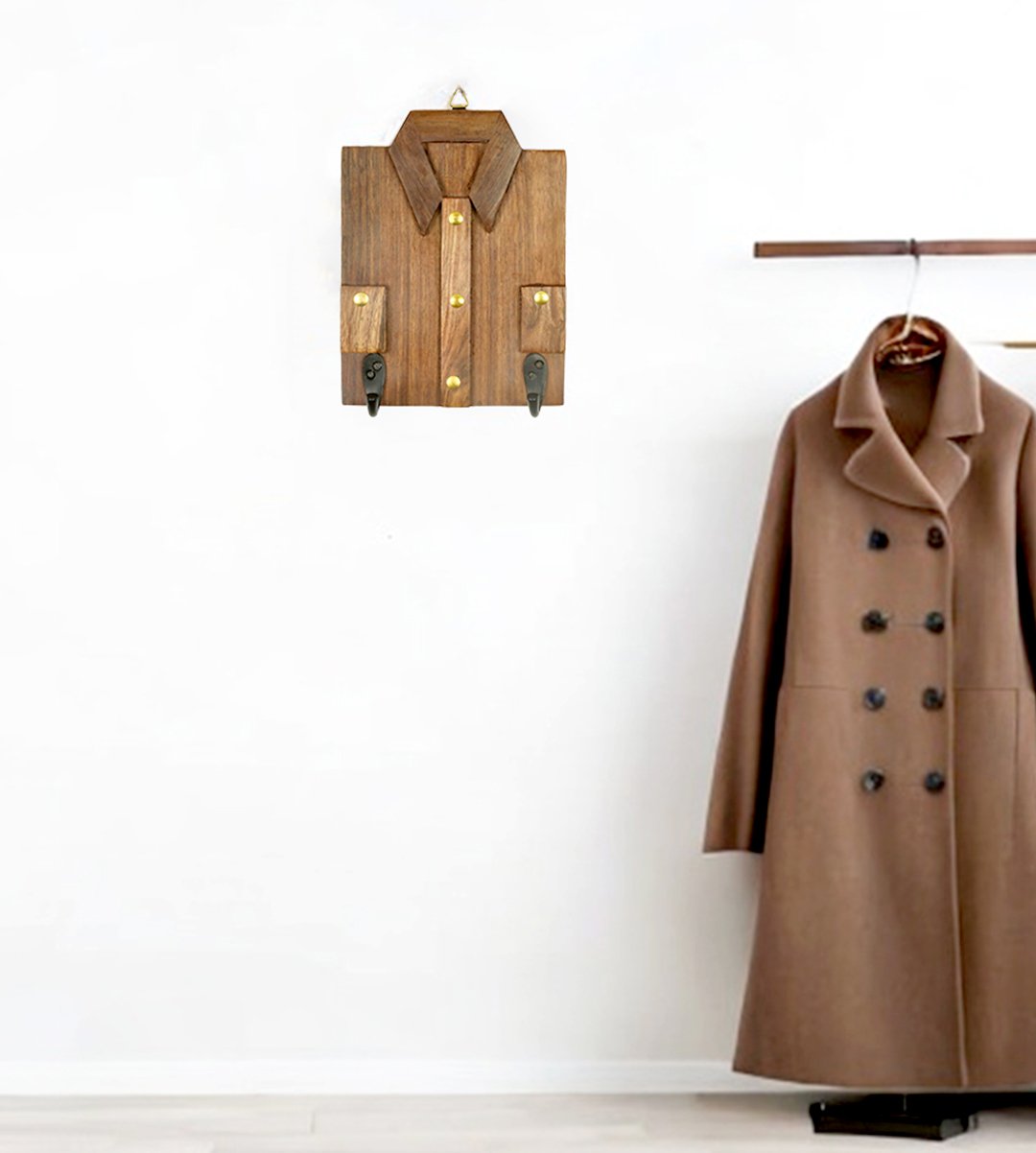 Tshirt shaped wooden hanging keystand / key rack for home and office walls