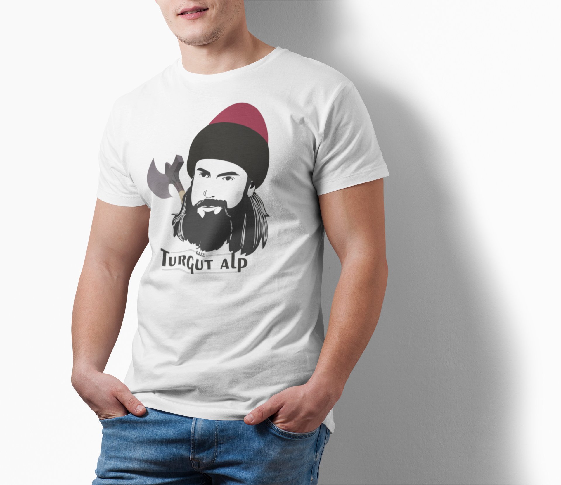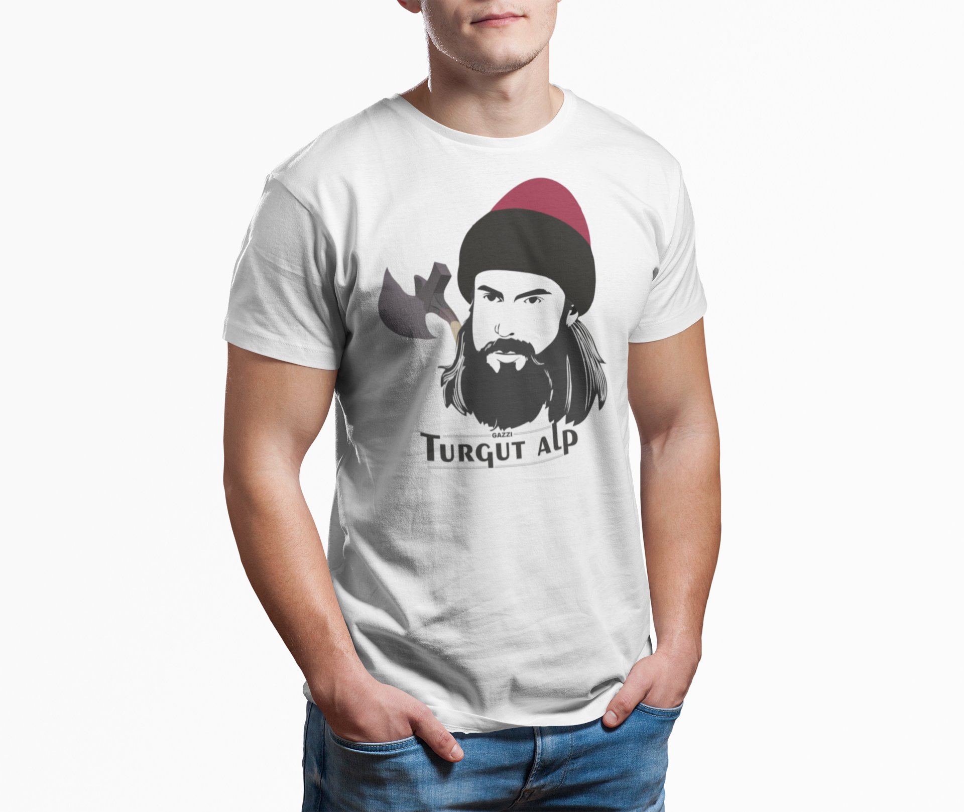 Turgupt Alp Face Illustration - White - The Ertugrul Ghazi - 100% cotton t-shirt for Men with soft feel and a stylish cut