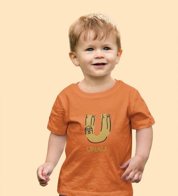 Ugly Unau, Boys Cotton Text Print Tshirt (orange)