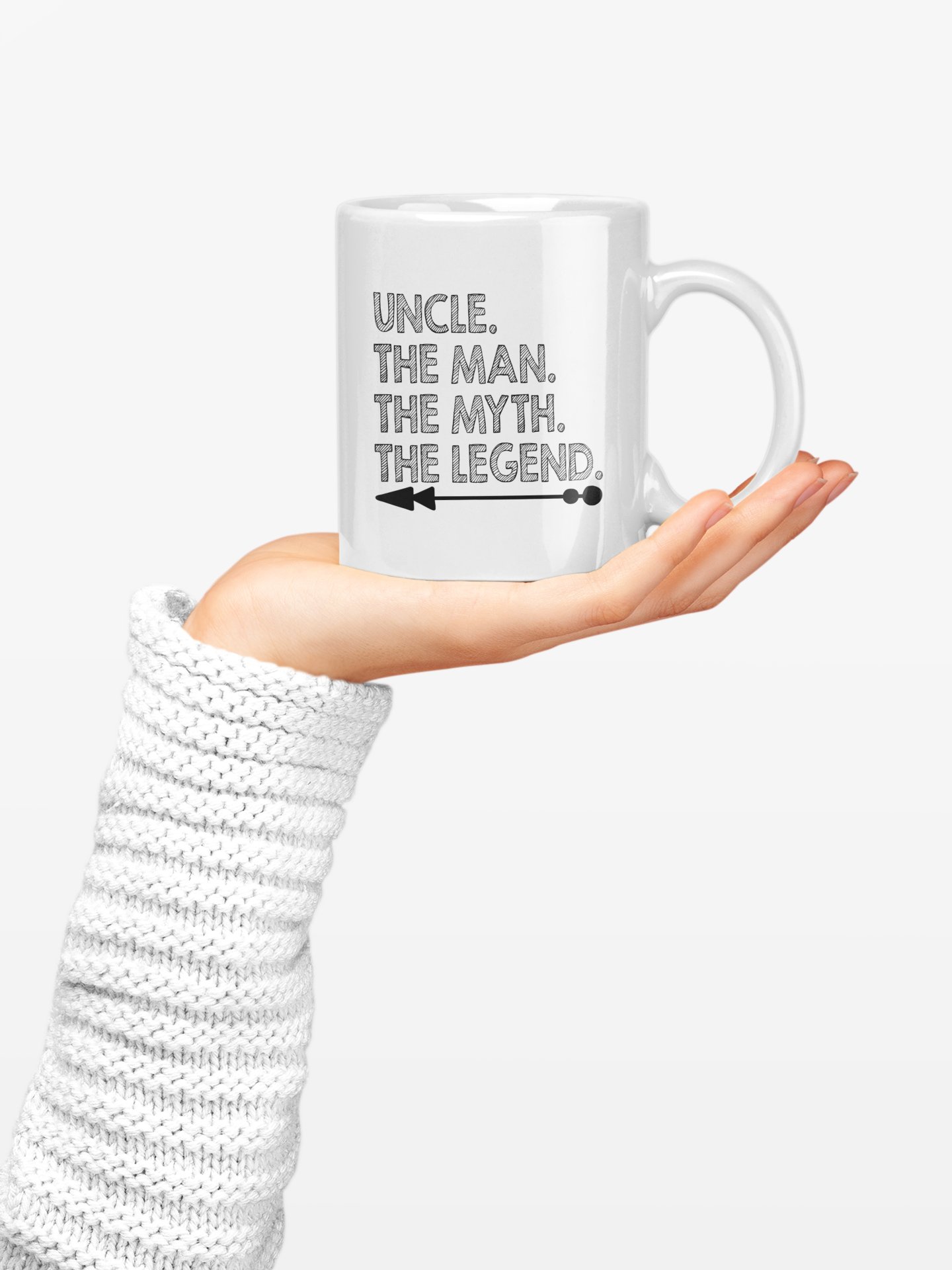 Uncle, The Man, The myth, The legend- family themed printed ceramic white coffee and tea mugs/ cups