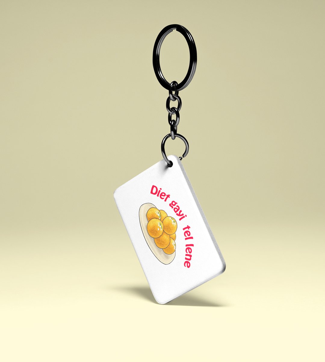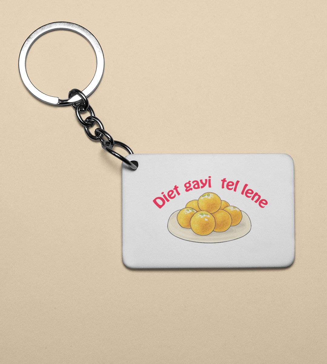 Diwali Sweet Temptations Keychain - 'Diet Gayi Tel Lene(Pack Of 2)