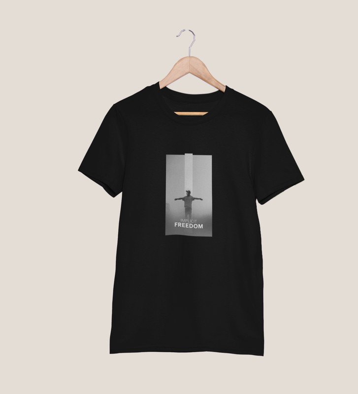 Unspoken Freedom, Dynamic Impressions: Black Men's Trendy Round Neck T-Shirt with Front Print