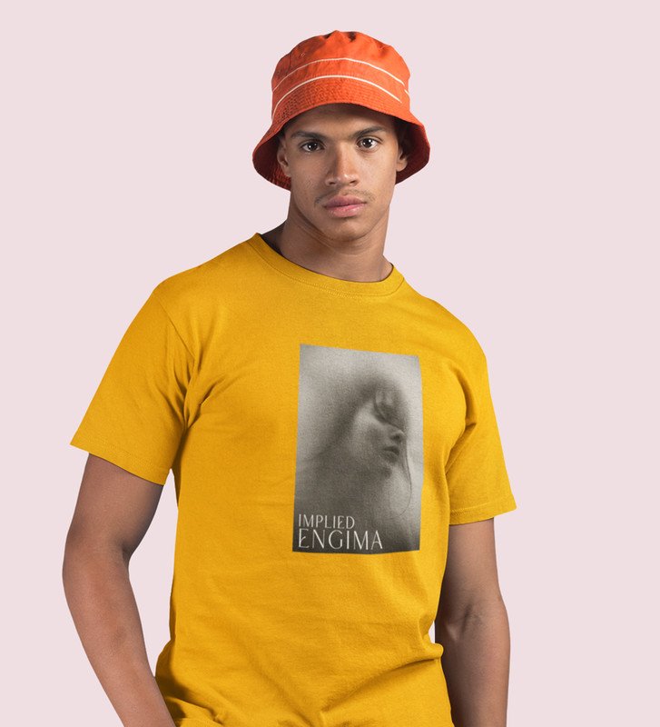 Untold Enigma, Yellow Metro Fusion: Men's Oversized Tee featuring Front Print Detail