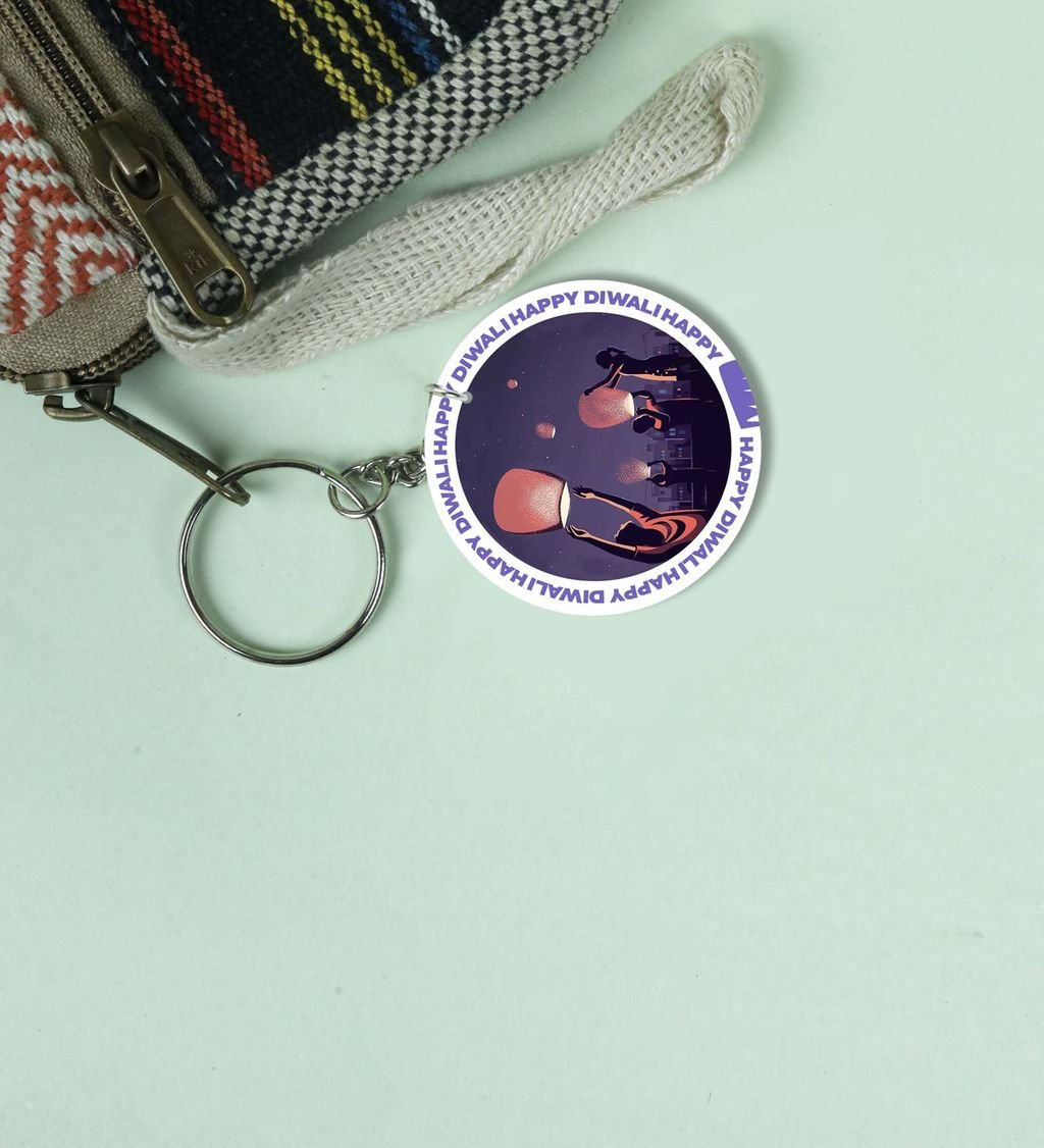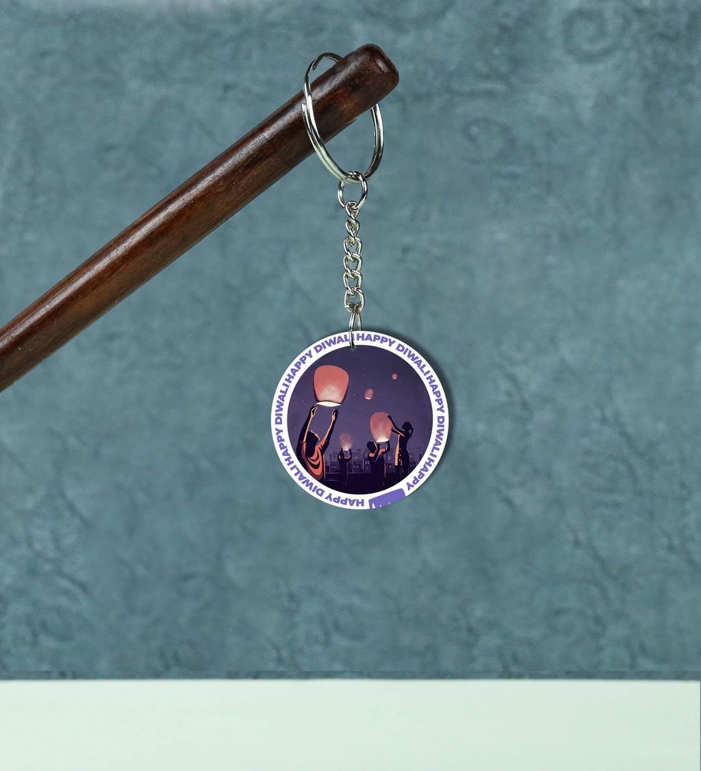 Uplifting Diwali Lantern Celebration Design for Festive Vibes Printed Round Keychain Pack of 2