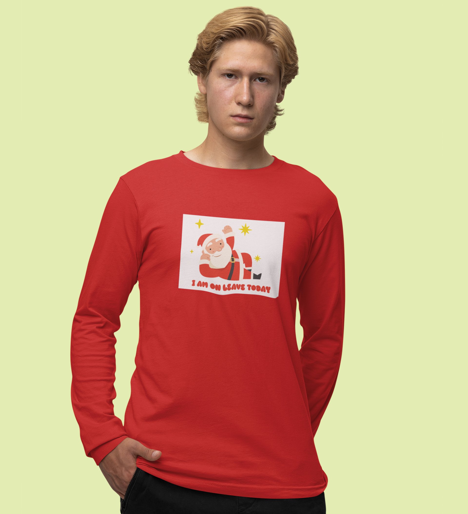 Vacational Santa: Humorously DesignedFull Sleeve T-shirt Red Best Gift For Secret Santa
