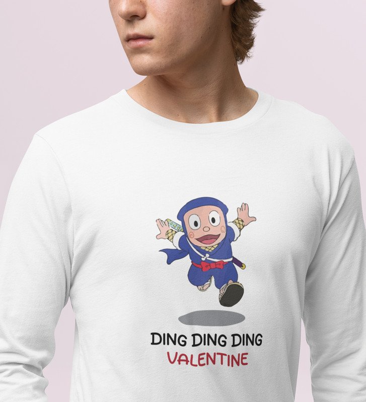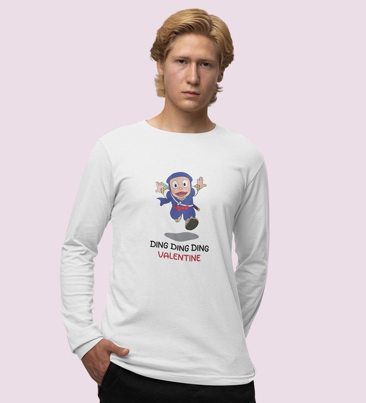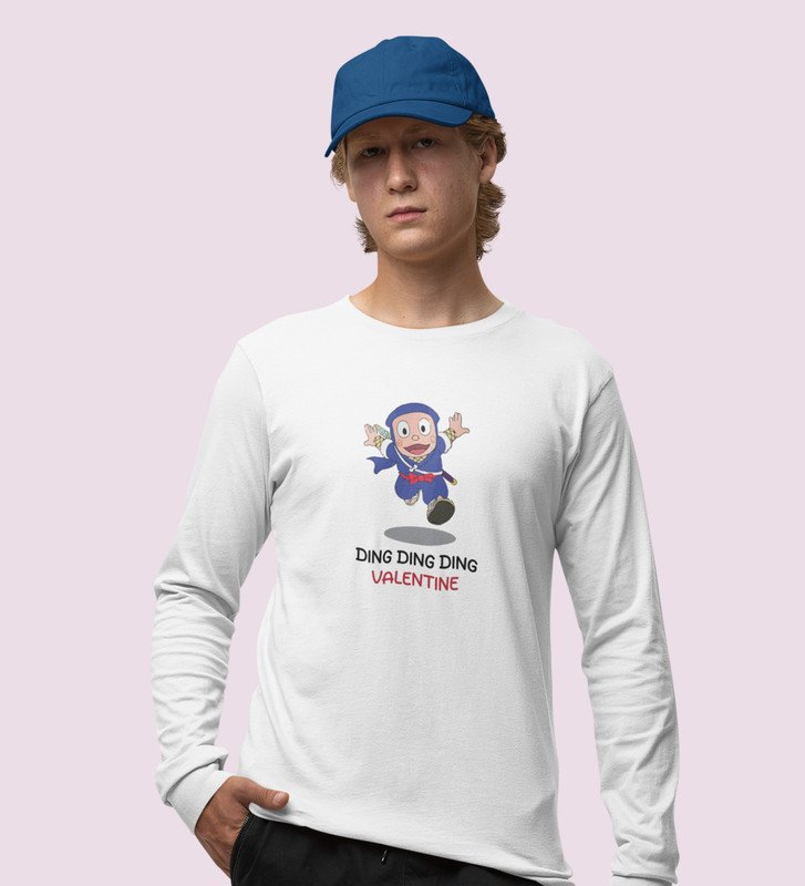 Valentine Ninja: Printed (white) Full Sleeve T-Shirt For Singles