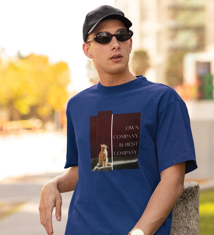 Vibe Alone, Street Couture: Blue Men's Oversized Tee with Eye-Catching Front Graphic