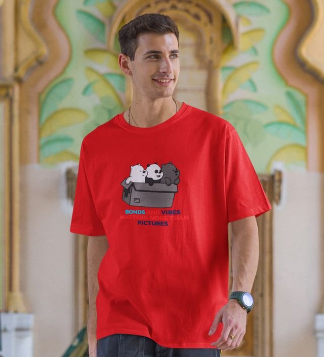 Vibes Matters Red Round Neck Cotton Half Sleeved Men T-Shirt with Printed Graphics