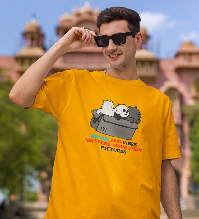 Vibes Matters Yellow Round Neck Cotton Half Sleeved Men T-Shirt with Printed Graphics