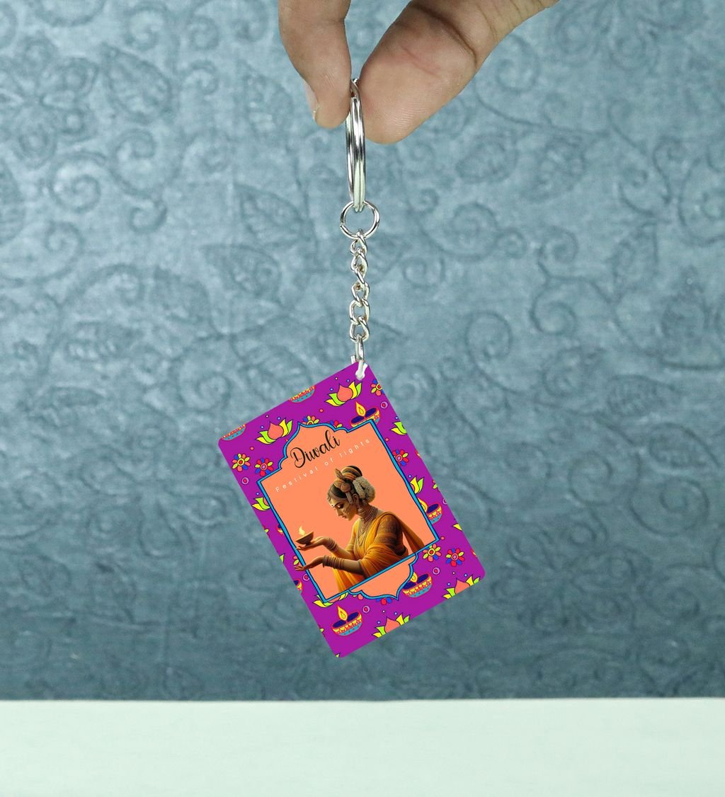 Vibrant Indian Festive Design Diwali Themed Printed Keychain Pack of 2